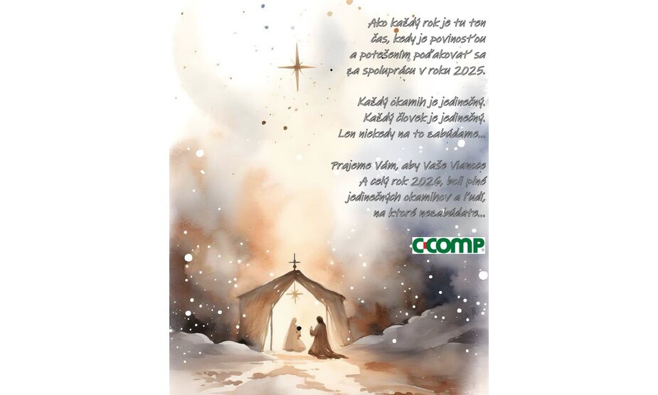 Prajeme vám a vašim rodinám krásne sviatky plné pokoja, oddychu, s úsmevom na tvári a úspešné vykročenie do Nového roku 2026.