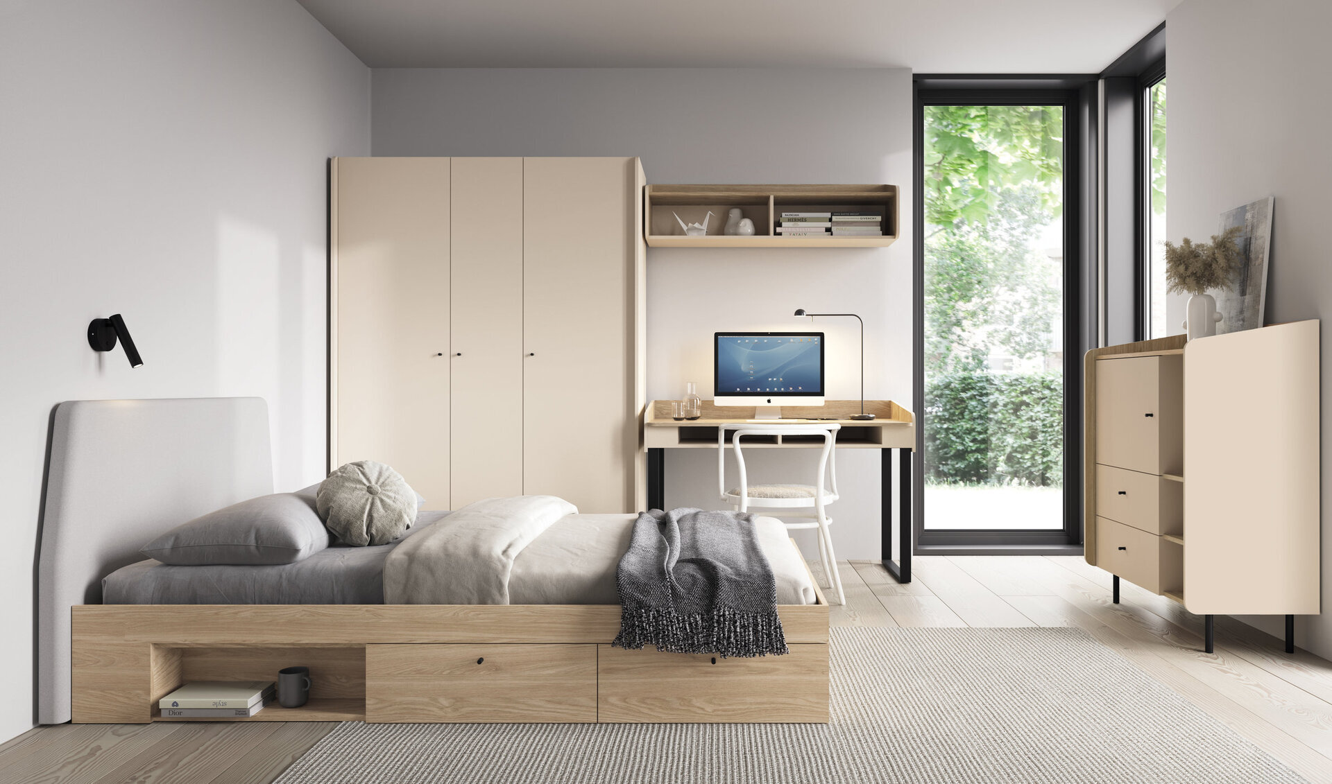 Komoda ALESSIO AE07 predstavuje praktické a zároveň elegantné riešenie úložného priestoru do obývačky, spálne či jedálne. Jemný béžovo-pieskový odtieň pôsobí moderne a ľahko sa kombinuje s rôznymi štýlmi zariadenia interiéru. Komoda ponúka dostatok miesta na uloženie oblečenia, dokumentov alebo domácich doplnkov. Úložný priestor tvorí kombinácia zásuviek, políc a uzatvárateľnej skrinky, ktorá umožňuje prehľadné usporiadanie vecí. Celkový vzhľad dopĺňajú malé, decentné úchytky a dekoratívna horná lišta, ktoré podčiarkujú moderný charakter nábytku.