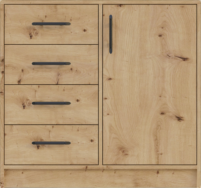 Komoda Smart 7 je súčasťou modernej kolekcie SMART, ktorá ponúka praktické riešenia pre zariadenie spálne, obývačky, chodby alebo detskej či študentskej izby. Jednotlivé prvky kolekcie možno medzi sebou kombinovať a vytvoriť tak funkčný a vizuálne jednotný interiér. Komoda zaujme kompaktnými rozmermi a praktickým riešením úložného priestoru. Disponuje štyrmi zásuvkami a uzatvárateľnou skrinkou s dvierkami, ktoré poskytujú dostatok miesta na uloženie oblečenia, doplnkov alebo rôznych predmetov každodennej potreby. Vďaka svojmu usporiadaniu umožňuje prehľadné organizovanie vecí a pomáha udržiavať poriadok v interiéri. Hornú plochu komody môžete využiť na vystavenie dekorácií, fotografií alebo doplnkov. Moderné farebné prevedenie dub artisan pôsobí elegantne a nadčasovo.
