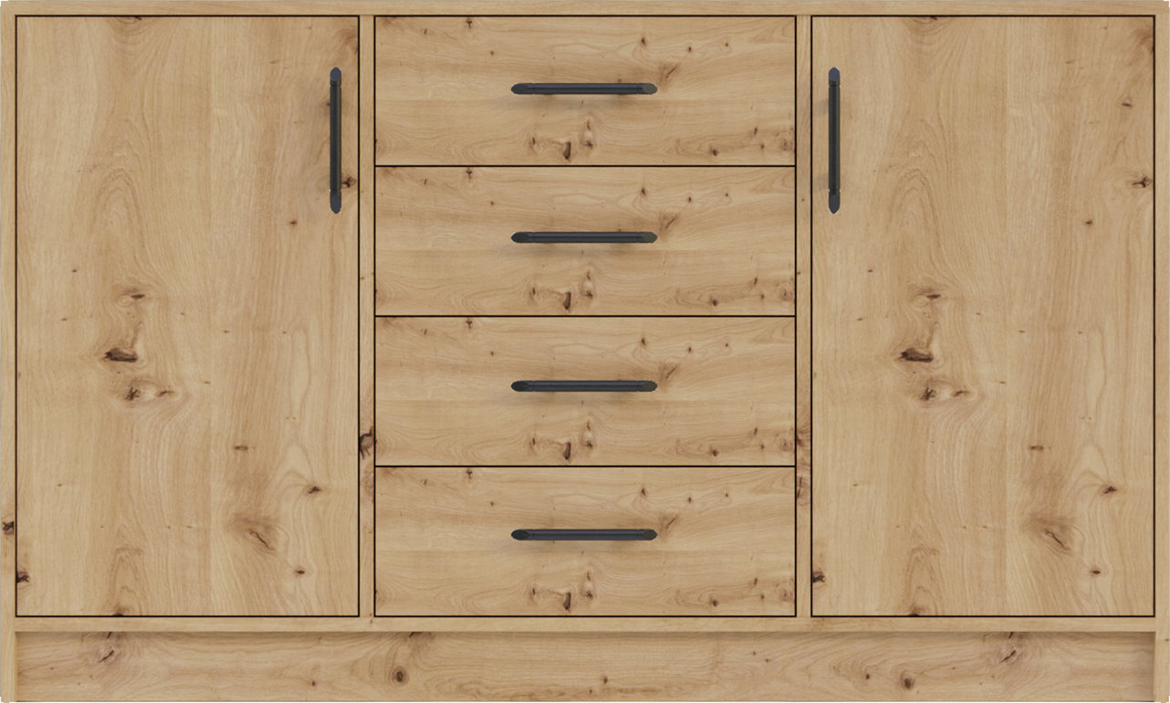 Komoda Smart 6 je súčasťou modernej kolekcie SMART, ktorá ponúka praktické riešenia pre zariadenie spálne, obývačky, chodby alebo detskej či študentskej izby. Jednotlivé prvky kolekcie možno medzi sebou kombinovať a vytvoriť tak funkčný a vizuálne jednotný interiér. Komoda zaujme priestranným a prakticky riešeným úložným priestorom. Disponuje štyrmi zásuvkami a dvomi uzatvárateľnými skrinkami s dvierkami, ktoré poskytujú dostatok miesta na uloženie oblečenia, doplnkov alebo rôznych predmetov každodennej potreby. Vďaka svojmu usporiadaniu umožňuje prehľadné organizovanie vecí a pomáha udržiavať poriadok v interiéri. Hornú plochu komody môžete využiť na vystavenie dekorácií, fotografií alebo doplnkov. Moderné farebné prevedenie dub artisan pôsobí elegantne a nadčasovo.
