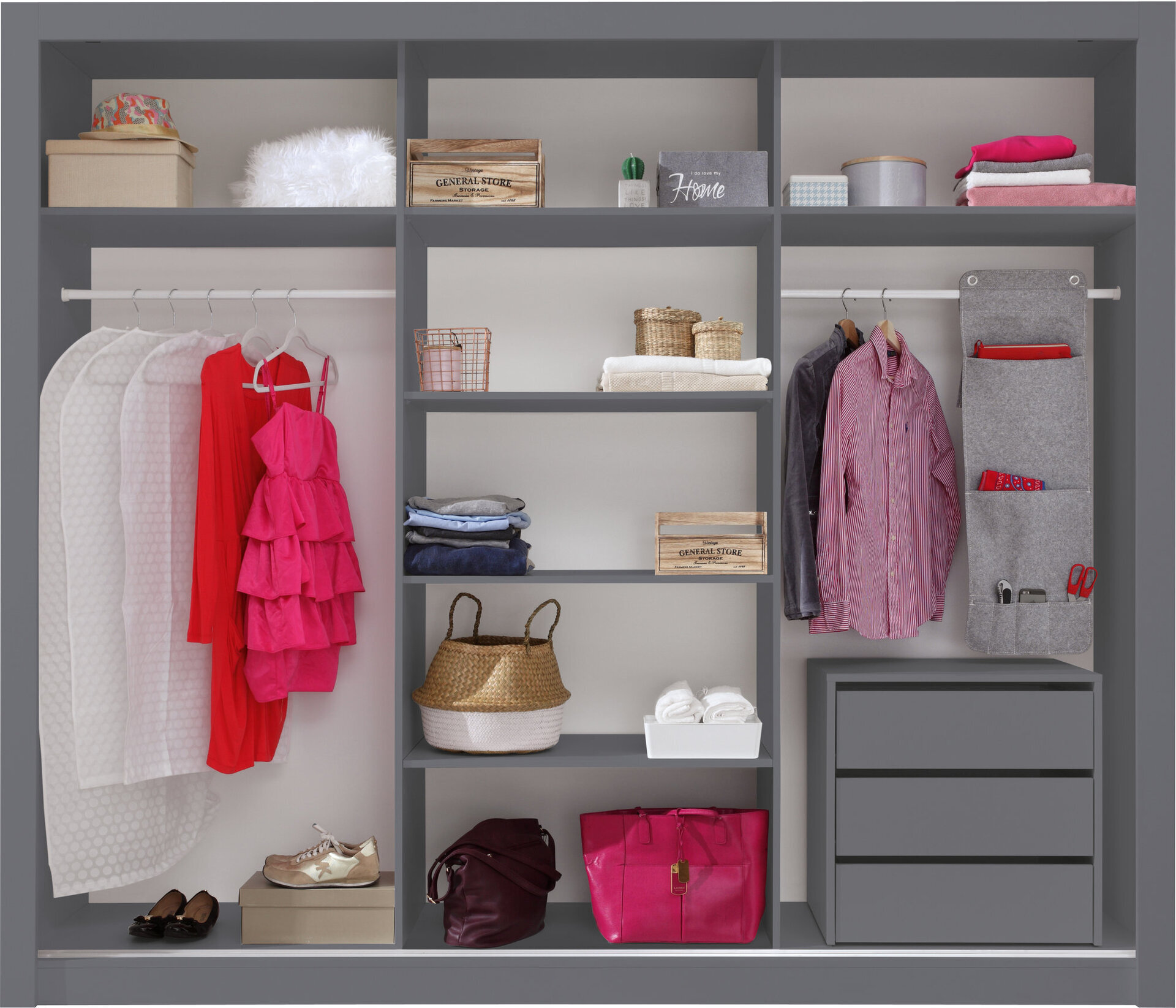 Zásuvkový kontajner DCK50 je praktickým riešením pre organizáciu priestoru v šatníku, spálni alebo predsieni. Je navrhnutý tak, aby efektívne využil vnútorný priestor skrine a pomohol udržiavať prehľad a poriadok. Kontajner DCK50 zaujme jednoduchým dizajnom a funkčným riešením úložného priestoru. Disponuje tromi zásuvkami, ktoré umožňujú prehľadné uloženie oblečenia, doplnkov alebo menších predmetov každodennej potreby. Vďaka kompaktným rozmerom je ideálny na umiestnenie do vnútra šatníkovej skrine bez zbytočného zaberania miesta. Minimalistický vzhľad pôsobí moderne a nadčasovo.