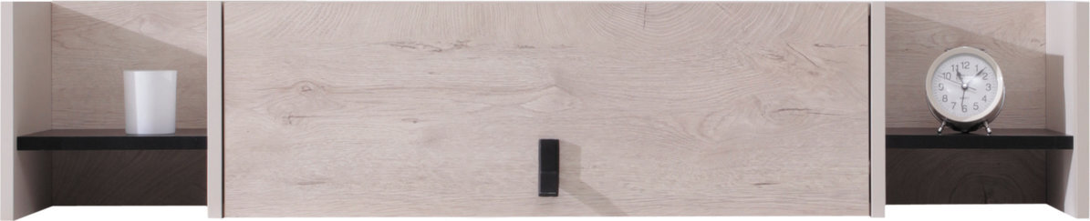 Polica Planet PL12 je súčasťou moderného detského sektorového nábytku, ktorý umožňuje zariadiť detskú alebo študentskú izbu podľa individuálnych potrieb a vkusu. Jednotlivé prvky kolekcie možno medzi sebou kombinovať a vytvoriť tak funkčný a vizuálne jednotný interiér. Polica na stenu Planet PL12 ponúka praktické aj dekoratívne využitie. Otvorené police sú ideálne na vystavenie kníh, dekorácií alebo obľúbených predmetov, zatiaľ čo uzatvárateľná skrinka s dvierkami poskytuje priestor na uloženie vecí, ktoré chcete mať skryté. Vďaka svojmu prevedeniu pomáha efektívne využiť priestor na stene a zároveň dopĺňa celkový vzhľad izby. Moderné farebné prevedenie čierna/dub/béžovápôsobí sviežo a nadčasovo.