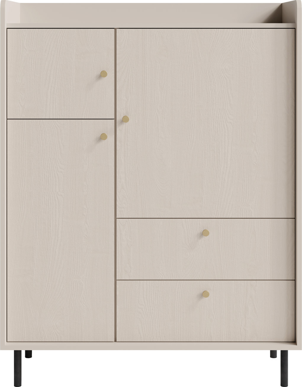 Regál GRANDE GR01 z kolekcie GRANDE kombinuje štýlový dizajn s praktickosťou. Vyvýšené okraje a jemne zaoblené hrany chránia povrch pred pádom predmetov a dodávajú nábytku elegantný a nadčasový vzhľad. Priestranné zásuvky a skrinky poskytujú dostatok úložného priestoru pre obývaciu izbu. ABS hrany zaručujú odolnosť a jednoduchú údržbu, zatiaľ čo pevná konštrukcia z laminovanej dosky zabezpečuje stabilitu a dlhú životnosť. Povrch nábytku je nenáročný na údržbu – stačí pretrieť mäkkou, mierne navlhčenou handričkou.