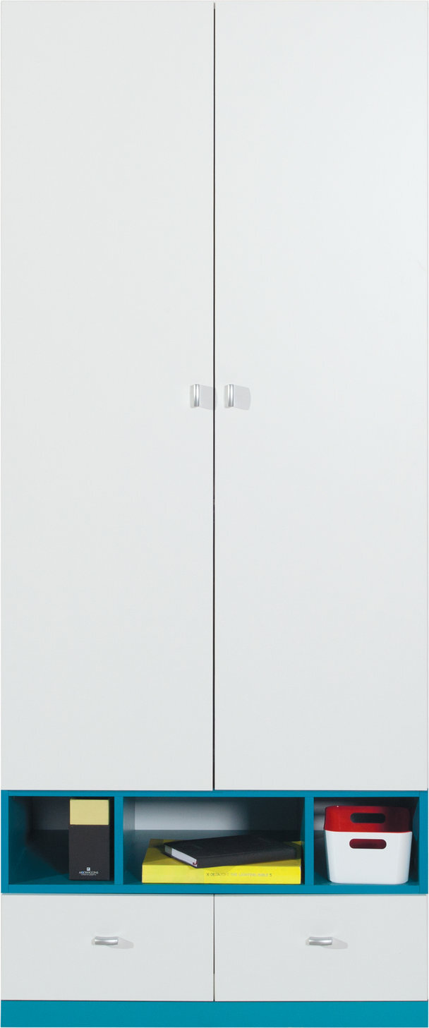 Šatníková skriňa MB02 v kombinácii biela / tyrkys je súčasťou moderného detského nábytkového systému, ktorý spája funkčnosť s hravým dizajnom. Svieže farebné prevedenie rozjasní každú detskú izbu a vytvorí príjemné prostredie na učenie, oddych aj zábavu.Dvojdverová skriňa ponúka praktický úložný priestor na oblečenie a ďalšie detské potreby. Vďaka kompaktným rozmerom je vhodná aj do menších miestností, pričom poskytuje dostatok miesta na každodenné využitie. Nadčasový vzhľad umožňuje jednoduché kombinovanie s ďalšími prvkami z rovnakej kolekcie.